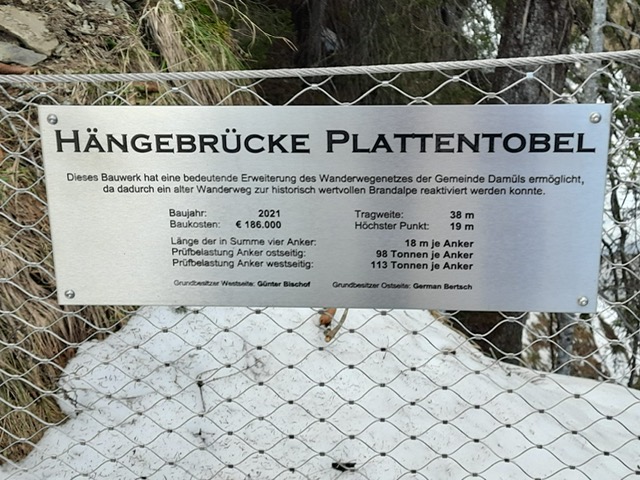 Als eine noch kostengünstigere Variante biete sich eine Hängebrücke aus verzinktem Stahl oder Edelstahl an, wie sie in den Alpenländern gang und gäbe sei. „Wir haben Kontakt mit einer Firma im Bregenzer Wald aufgenommen, die neben anderen in Damüls einen mit 38 Metern etwa gleich langen Steg gebaut hat. Der Eigentümer der ausführenden Firma betästigte mir den damaligen Herstellungspreis von 186 000 Euro, inklusive der Fundamentierungsarbeiten“, führt Fraktionsvorsitzender Rolf Leo aus.